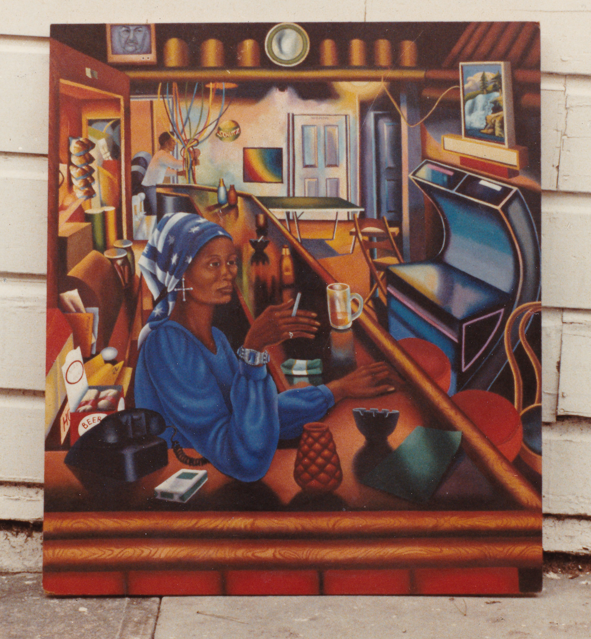 Portrait of Minnie Baker in her club, the 'Can Do', Fillmore, San Francisco / 1973 / oil on masonite / in the collection of Minnie Baker.